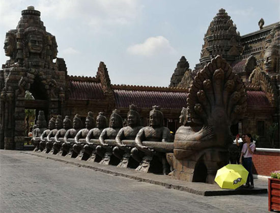 南寧方特東盟神畫是國內首個全面展示東盟十國自然歷史文化的主題樂園。據園區內工作人員介紹,園區還原了東盟十國最負盛名的名勝古跡和建筑,讓游客身臨其境感受越南的水上集市、老撾千年塔鑾寺的建設歷程和變遷、印尼獨有的節慶文化和民俗、馬來西亞民族英雄大戰海島的傳奇故事……正如華強方特總裁劉道強所說,東盟神畫園通過“十個國家、十個故事、十一大主題項目、十一段傳奇體驗”帶領游客感受東盟各國的文化精髓。