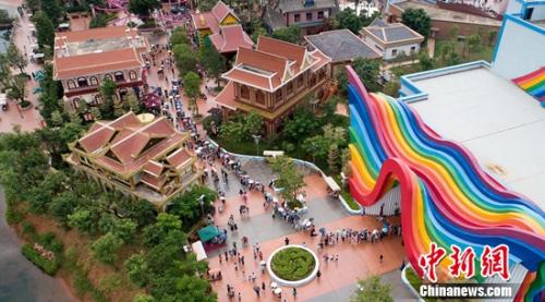 9月29日晚,游客在位于邯鄲市磁縣的方特國色春秋主題樂園景區游玩。河北日報通訊員韋科攝