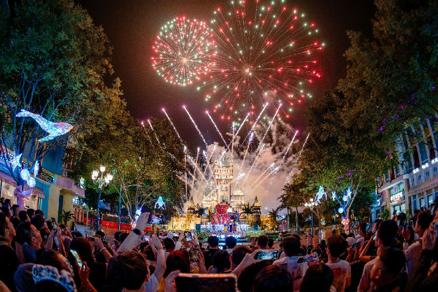 中秋小長假期間,多地方特樂園延長營業(yè)時間,開啟日夜超長暢玩模式。白天,游客可暢玩《女媧補天》《飛翔》等高科技主題項目,欣賞《梁祝》《孟姜女》等大型演藝項目;當夜幕降臨,各地方特樂園變身為歌舞狂歡的海洋:大同方特“篝火狂歡夜”、廈門方特“浪漫民謠派對”、蕪湖方特“唐宮夜宴舞臺秀”、自貢方特“月球狂想之夜”等夜場活動繽紛啟幕,更有無人機、煙花大秀震撼上演,與皎潔的圓月交相輝映,為游客打造“賞月”新體驗。